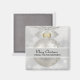 A magnet with a magical holiday design. Featuring a silver Christmas ball with snowflake decorations and finished off with a pretty silver bow. The background is a silver bokeh lights illustration with elegant stars scattered throughout.