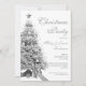 Elegant Silver Christmas Tree Bow Holiday Party Invitation