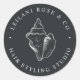 Label your business correspondence or products with these chic stickers that match our Conch Shell logo branding suite for hairstylists, salons or any beach-based or island business. Rich soft black stickers feature a faux silver foil conch seashell illustration in the center, with two text fields curving around the outside, in classic white lettering.