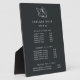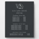 Elegant plaque with easel displays your salon services or price list in classic white lettering on a rich soft black background adorned with a tropical faux silver foil conch shell illustration. Includes three customizable headings and body text fields. To adjust layout, enter your text and then use the Customize function to change positioning and font sizes.