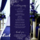 This beautiful wedding program features an elegant design with pale grey text on a navy blue background and lacy silver grey faux foil curls and swirls in the corners. The titles are written in fancy script calligraphy, and there is space for your ceremony and wedding party details, as well as a short thank you for your guest. Wonderful way to welcome your friends and family to your wedding celebration.