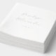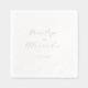 These wedding napkins feature a minimalist and elegant design with ample negative space, creating a clean and sophisticated look. The names are written in an elegant cursive script, connected by the word "AND," while the date is presented in a small, understated serif font. The soft grey tones of the text contrast subtly against the light background, enhancing the delicate and refined appearance. Perfect for adding a touch of personalisation to your special day, these napkins embody a classic and timeless style, ideal for weddings or formal events.