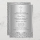 Elegant Silver Damask & Cross Baptism/Christening Invitation