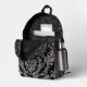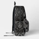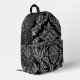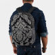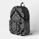 A sophisticated black backpack adorned with an intricate and elegant silver damask pattern, perfect for adding a touch of classic style to your everyday carry.
