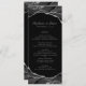 Provide your guests with this simply elegant wedding menu design featuring classic shades of black, white and grey agate with metallic silver foil veins. Customise it with your names, wedding date and menu options.