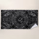 Elegant Silver Foil Look Filigree Scrollwork Black Beach Towel
