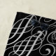 Elegant faux silver grey foil filigree looking effect scrollwork script on black.