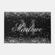 Elegant Silver Glitter Black and White Monogram large doormat with a customisable calligraphy script name and bold monogram template. A glam, girly personalised large doormat for your new home or dorm room.