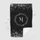 Add a touch of luxury to the course with this elegant silver glitter and black monogram golf towel, perfect for personal use or gifting.