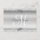 Silver glitter damask on the top and bottom is accented with wedding rings, and frames the trendy script typography. The monogram of the bride and groom is on the back in an elegant clean script font.