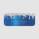 Elegant Silver Glitter Drips Blue Metallic Name Tag