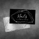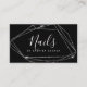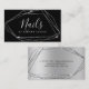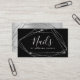 This gorgeous nail technician business card design features faux silver glitter frame, black background and elegant calligraphy font.