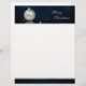 An elegant Christmas Illustration: a silver Christmas ball and white pearls on a dark blue bokeh background.