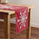 Elegant Silver Glitter Snowflake on Christmas Red Short Table Runner