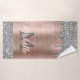 Modern, girly silver glitter drips name and monogrammed bath towel. This design features silver grey (grey) glitter sparkle drips on pink brushed metal background with custom personalised monogram initial and first name text template. Perfect feminine gift. If you need help or matching items, please contact to me. Please note, this design is printed photo effect with no real glitter.