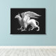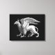 Canvas in an elegant silver grey / grey image of a griffin, a mythical cross between an eagle and a lion, with a subtle 3-d look on a black background