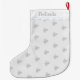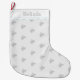 Beautiful and elegant silver heart pattern on light silver background personalised stocking. Merry Christmas!