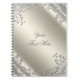 Elegant creamy beige with silver accents wedding and event notebook. This pretty ivory cream beige notebook works well for a wedding guest book, wedding planner, anniversary party guest book, party planning notebook, corporate notebook, and any other special occasion or event. You can customise easily the front with your text by simply choosing the orange "Customise it!" button to begin adding your event details, font style, font size & colour, and wording. Please note - all of the notebook, card and invitation designs you will find on Zazzle are printed graphics with no actual jewels, bows, raised, embossed, or added parts or pieces.