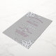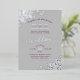 This beautiful wedding invitation features both cassis purple, magenta, or berry and real foil silver printing on a grey or grey background. The beautiful design has lacy script calligraphy with floral lace filigree in the corners. Stylish, elegant, sophisticated, and chic, this invitation is fancy and glam. The perfect choice for elegance, style, and class.