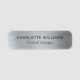 Elegant silver metallic style personalised employee name tag or a business (not real metal but an image printed). Ideal for managers, office workers, retail stores, and any professional corporation. An option with a logo is available in the store.