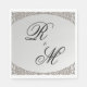 A very elegant and luxurious silver wedding napkin, which can be personalised with the bride and groom's monograms. It has a luxe silver metallic-look, with an ornamental silver lacework around the edges.