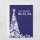 Matching Products Available! Elegant winter wedding "Save The Date" design with Sparkling Christmas Tree Silver Navy Blue motif, custom names and date text. Fully customisable! Easy to use and easy to personalise.