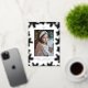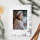 Send warm wishes with this elegant photo card featuring your vertical photo framed by silver foil pine boughs on a white background. Personalize the refined design with your greeting, family name, and year in matching silver foil lettering. The back includes your custom message in black lettering for a sleek and timeless finish.