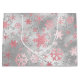Elegant Silver Pink Christmas Snowflake Pattern Large Gift Bag