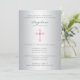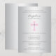 Elegant Silver Pink Cross Girl Baptism Christening Invitation