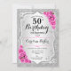 Elegant Silver Pink Photo 50th Birthday Invitation