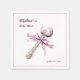 Elegant Silver Pink Rattle Bow Baby Shower Napkin