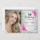 Elegant Silver Pink Roses Photo 50th Birthday Invitation