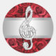 Elegant Silver Red Rose Treble Clef Stickers
