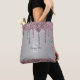 Enjoy carrying all of your stuff in this fashionable tote bag featuring your name and monogram in dark grey and white under sparkly rose gold pink glitter drips and over a silver foil background. This elegant tote design also includes a matching glitter base.