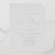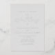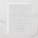 This simple, modern wedding invitation features real silver foil text on a pale grey background, with the words "the Wedding of" in elegant handwritten calligraphy script. Add the names of the bride and groom in serif and the wedding details in sans serif font. The reverse side is solid grey.