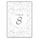 These chic table numbers feature delicate silver stardust confetti. Personalise with your details in chic silver lettering. Perfect for weddings, bridal showers, baby showers, baptisms, engagement parties, anniversary celebrations, graduations, birthday get-togethers and other special events throughout the year! Designed by Pure Piglet© at www.zazzle.com/purepiglet*.