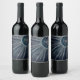 Elegant Silver Sun Moon Doodle Mandala Blue Design Wine Label