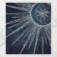 This Beautiful, Mystical, Blue, Silver Sun, and crescent Moon Mandala Universe theme Aesthetic Design is perfect for home decor, everyday wear, or special events enchanted decorations. A pretty, whimsical blue, silver sun, and moon mandala design, featuring flowers and leaves doodles, stars, dots, diamonds, circles, triangles, and mermaid scale geometric shapes, with a crescent stage glowing moon, a mandala flower star, made with faux silver glitter, on a dark blue nebula, galaxy stars, midnight blue colour background.