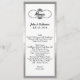 Long and skinny wedding table menu done in white, with a silver tone frame around the outside and a vintage looking black swirl text area, at the top. Personalise all the text to suit your wedding reception menu. Lovely addition to your wedding reception.