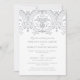 Elegant vintage inspired wedding invitations feature an ornate decorative border design with a metallic silver grey shimmer appearance.