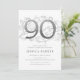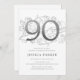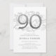 Elegant silver white 90th birthday party invitation. Customisable modern feminine design featuring roses botanical accents and faux glitter silver. Simple floral invite card perfect for a stylish female bday celebration. Personalise with your own details. Printed Zazzle invitations or instant download digital printable template.
