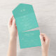 Elegant Simple Aquatic Awe with Monogram Wedding All In One Invitation