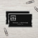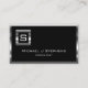 Black with chrome border and monogram. Modern Professional Elegant Black and Chrome minimalistic business card with style and understated class for any professional businessman. NOTE: Change the background colour and see what you get- this card is made to change colour and keep the design- Black is the colour chosen here but you will get different effects with different colours - use the customise button and then the edit button, a drop down menu will appear - at the bottom is says background and shows a colour box, click this to change the background colour from the colour pallet. This card has no metal on it - it is a flat cardstock business card artistically designed to appear real