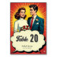 This elegant comic book-style wedding table number is perfect for a modern wedding. The retro design features a vintage bride and groom illustration and black calligraphy on a comic book-themed background.