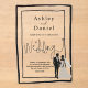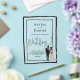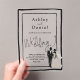 This elegant black-and-white acrylic wedding invitation is perfect for a modern wedding. The simple design features elegant black calligraphy, a chic black frame, and a bride-and-groom illustration on a clear transparent background. The invitation card includes the wedding details on the back instead of paying for a separate enclosure card.