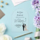 This elegant black-and-white arch acrylic wedding invitation is perfect for a modern wedding. The simple design features elegant black calligraphy and a bride and groom illustration on a clear transparent background. The invitation card includes the wedding details on the back instead of paying for a separate enclosure card.