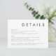 This is an modern elegant wedding details card featuring minimalist layout. All colours are editable. // For matching designs, search "HARLOW" in the Sincerely By Nicole Zazzle store. * If you like this design but don't see it available for something you are looking for, please reach out to me any time :)