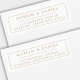 Elegant, simple wedding return address stamp, in a modern minimalist design, featuring the bride and grooms name in stylish serif script typography with an elegant border paired with a customisable mailing address text in a trendy font for a chic, sophisticated feel in classic gold and white.