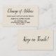 Keep your friends and family up to date with your new address using these simple, elegant enclosure cards. Versatile notes read "Change of Address" on the front and "Keep in Touch!" on the back, using a modern, casual, handwritten script font. Use the template fields to add all your details to personalise this design for your own use. You can change the background to any colour you wish. Likewise the fonts can be changed if you wish to edit the design a bit more.