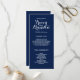 Elegant Wedding Programs. White text on navy blue background. Design by Elke Clarke © Available at www.zazzle.com/monogramgallery. Customise with your background colour and all your personal information to create a simple yet sophisticated program which your ushers can hand out as your guests enter the church or are seated where the ceremony will take place. It helps people follow along during the ceremony but also acts as a keepsake for your guests. You can use the template fields to fill in the suggested information about your wedding party and order of service and thank you message or select "customise it" and use the edit menu to change the text spacing, fonts, colours as you wish to create your own wedding programs.